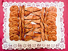 Pâte de farine et margarine, étendue en feuilles très fines et superposées plusieurs fois. Les petits gâteaux les plus connus sont les lacets et les lunettes. |