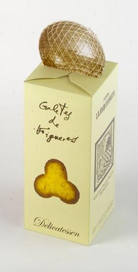 Capsa de galetes Delicatessen, molt típica de la nostra botiga, i que hem volgut homenatjar al famosíssim pintor de la nostra cuitat, amb unes galetes molt cruixents. Les galetes interiors representen el pa de tres crostons de la façana del museu Figuerenc.